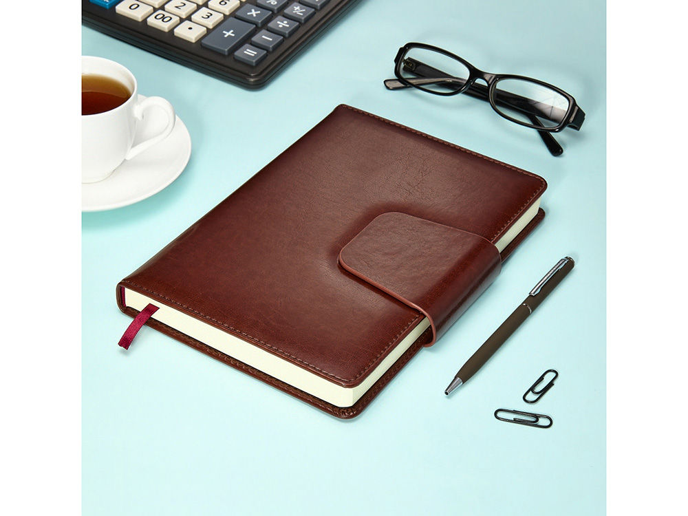 Недатированный ежедневник «Prestige» от бренда Bruno Visconti - это качественный корпоративный подарок по выгодной цене, произведенный специально под персонализацию. Представлен в универсальном формате А5 и содержит 320 страниц. Не лишенный солидности и респектабельности новый ежедневник Prestige от Bruno Visconti идеально дополняет имидж современных профессионалов. Твердая обложка выполнена из гладкого кожзама, неотличимого от кожи “fiore vegetale”. Скругленный корешок и уголки обложки в сочетании с магнитным клапаном делают ежедневник Prestige невероятно стильным аксессуаром. Глянцевая поверхность материала акцентирована контрастной белой строчкой вдоль закругленного края. Функциональная деталь - широкий магнитный клапан. Декоративный хлястик надежно фиксирует блок, исключая случайное раскрывание в сумке. В ежедневнике «Prestige» есть полезная справочная информация на русском языке, а также страницы для записи идей, мыслей и составления рабочих планов. Дни недели указаны сокращенно на английском языке. Для изготовления страниц используется качественный бежевый офсет повышенной плотности (70 г/кв м), который производится в Японии и подходит для всех видов чернил. Разметка блока с указанием времени позволяет планировать дела с точностью до 1 часа. Ежедневники от бренда Bruno Visconti можно персонализировать с помощью всех видов тиснения обложки. Наши ежедневники помогут быть успешным и эффективным в карьере и повседневной жизни!