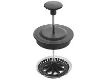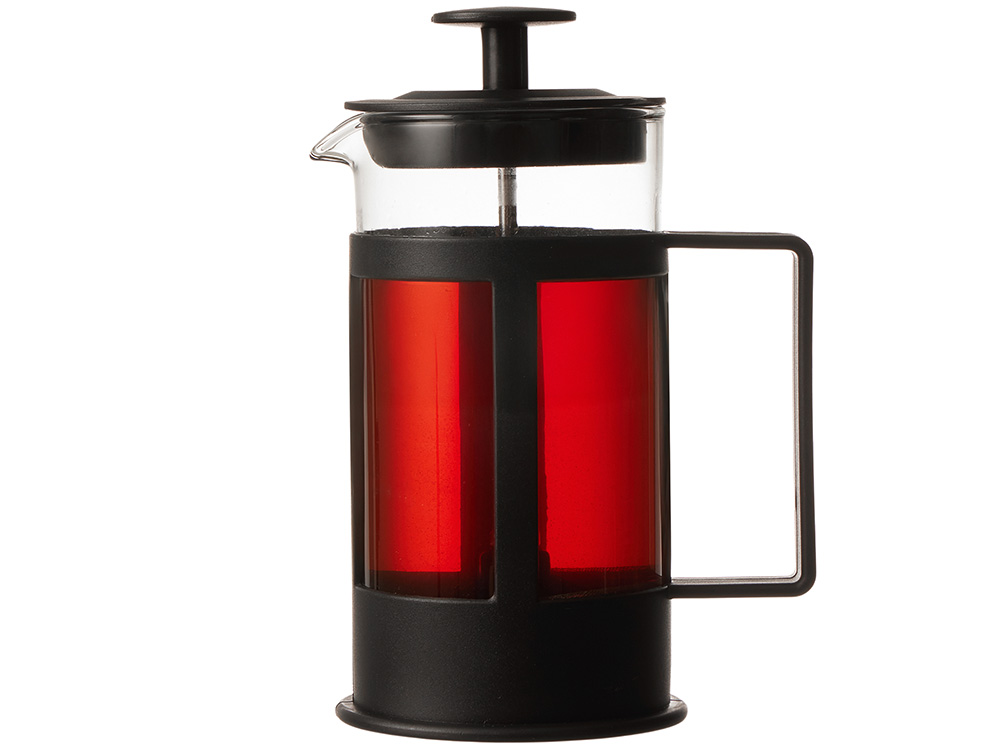 Этот кухонный прибор имеет плотно прилегающую пластиковую крышку, поршень из нержавеющей стали и пресс-фильтр с уплотнительным кольцом из пластика для отделения чайных листьев от воды.