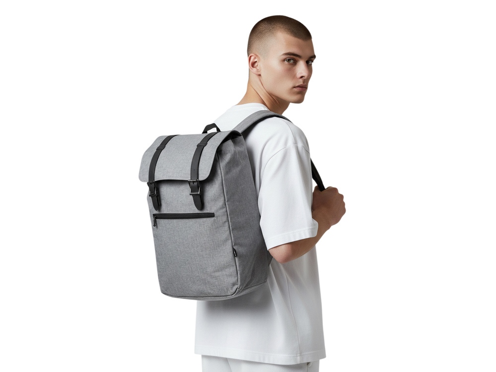 Легкий и вместительный рюкзак закрывается с помощью двух магнитов и стяжки-шнурка. Внутри расположен карман для ноутбука, который фиксируется эластичной лентой на липучке. Снаружи - карман на молнии. Лямки регулируютcя по длине.