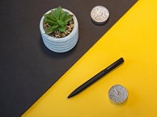 Эта металлическая ручка имеет очень необычную интересную форму — верхняя часть (до поворотного механизма) уже, чем нижняя. За счёт покрытия софт-тач ручка очень приятна на ощупь. При гравировке вскрывается серебристый слой.