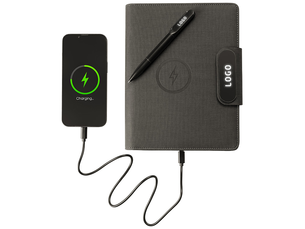 Комплектность: органайзер-блокнот 18 х 22,5 х 2,5 см, ручка шариковая d1,2 х 1,5 х 14,3 см, кабель Type C- Lightning