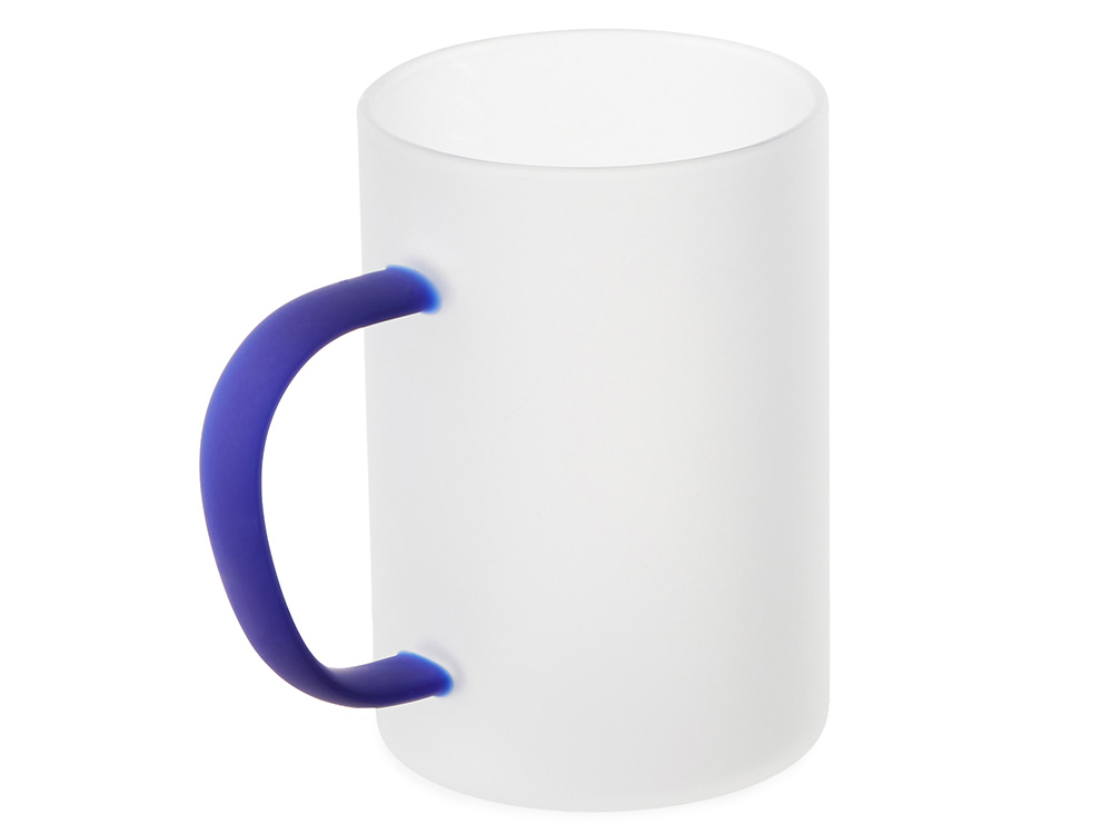 Стеклянная матовая кружка "Акцент" с цветной ручкой для сублимации, синий