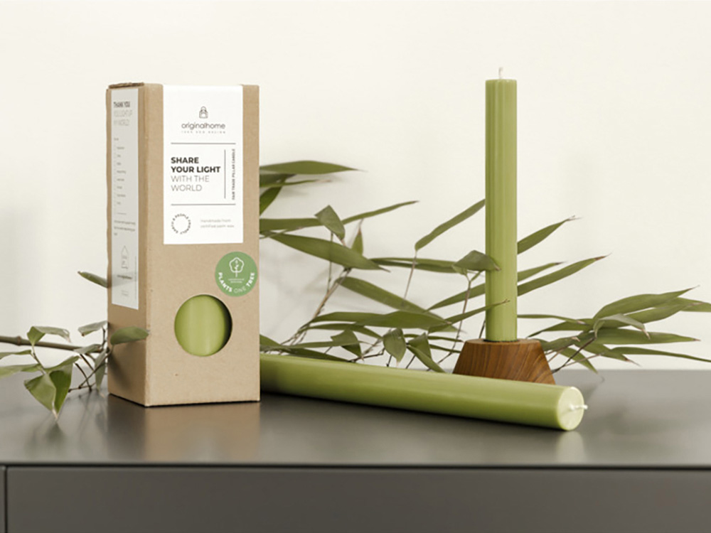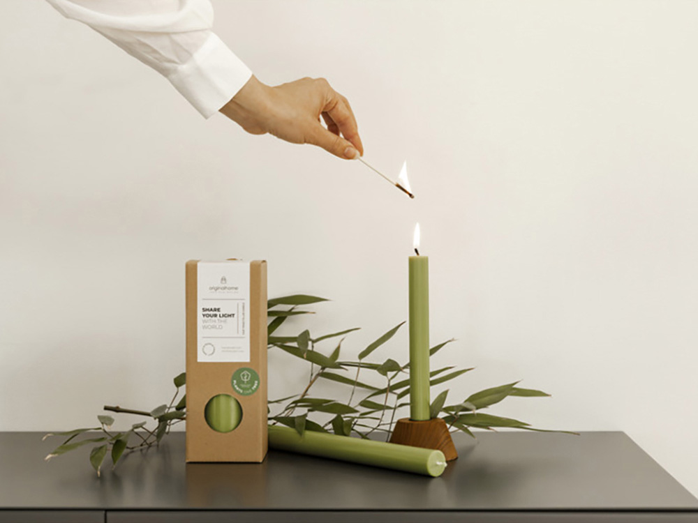 Столовая свеча от Originalhome на 100% натуральная и изготовлена вручную из сертифицированного пальмового воска. В комплект входят 10 свечей без запаха, упакованных в подарочную коробку. Каждая свеча горит примерно 7-8 часов.