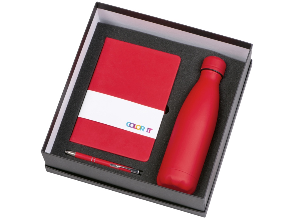 Материал товара: блокнот - искусственная кожа с покрытием soft-touch, ручка - алюминий с покрытием soft-touch, термобутылка - нержавеющая cталь с покрытием soft-touch, коробка - картон