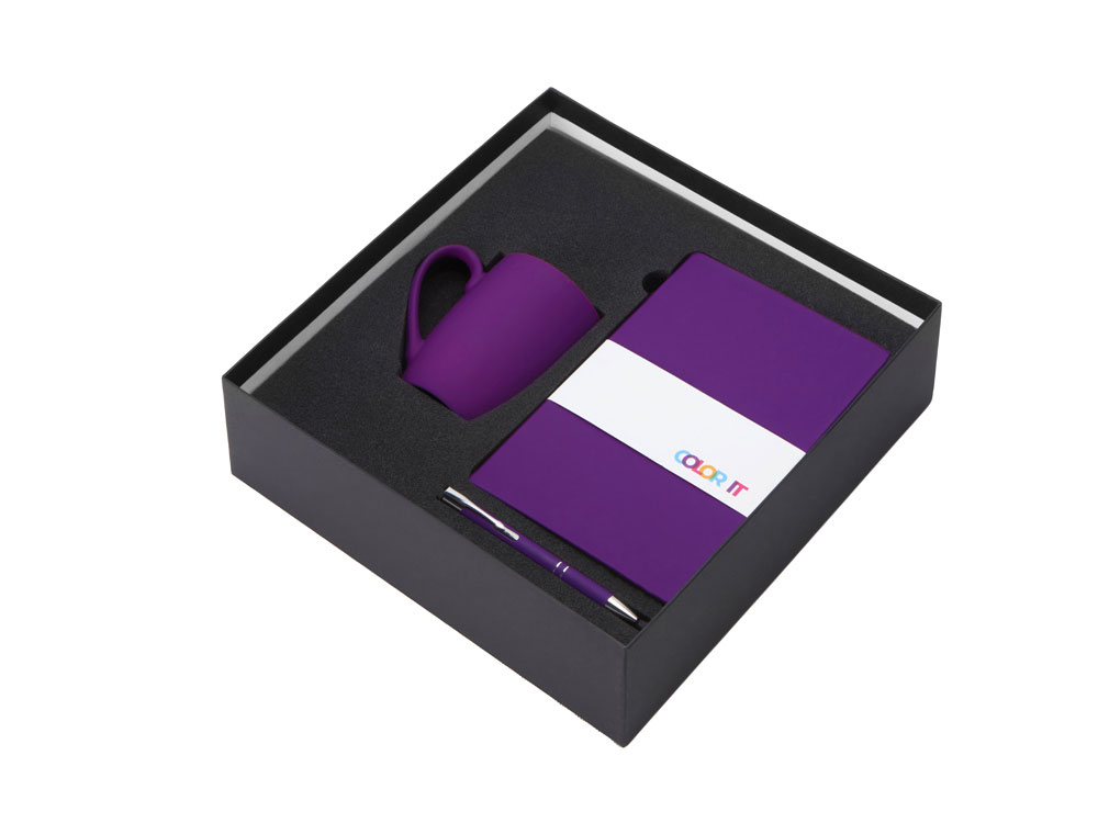 Материал товара: блокнот - искусственная кожа с покрытием soft-touch, ручка - алюминий с покрытием soft-touch, кружка - фарфор с покрытием soft-touch, коробка - картон