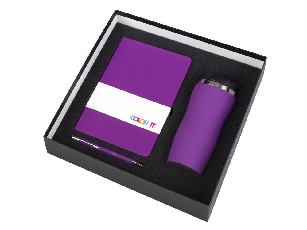 Материал товара: блокнот - искусственная кожа с покрытием soft-touch, ручка - алюминий с покрытием soft-touch, термокружка - нержавеющая cталь с покрытием soft-touch, коробка - картон