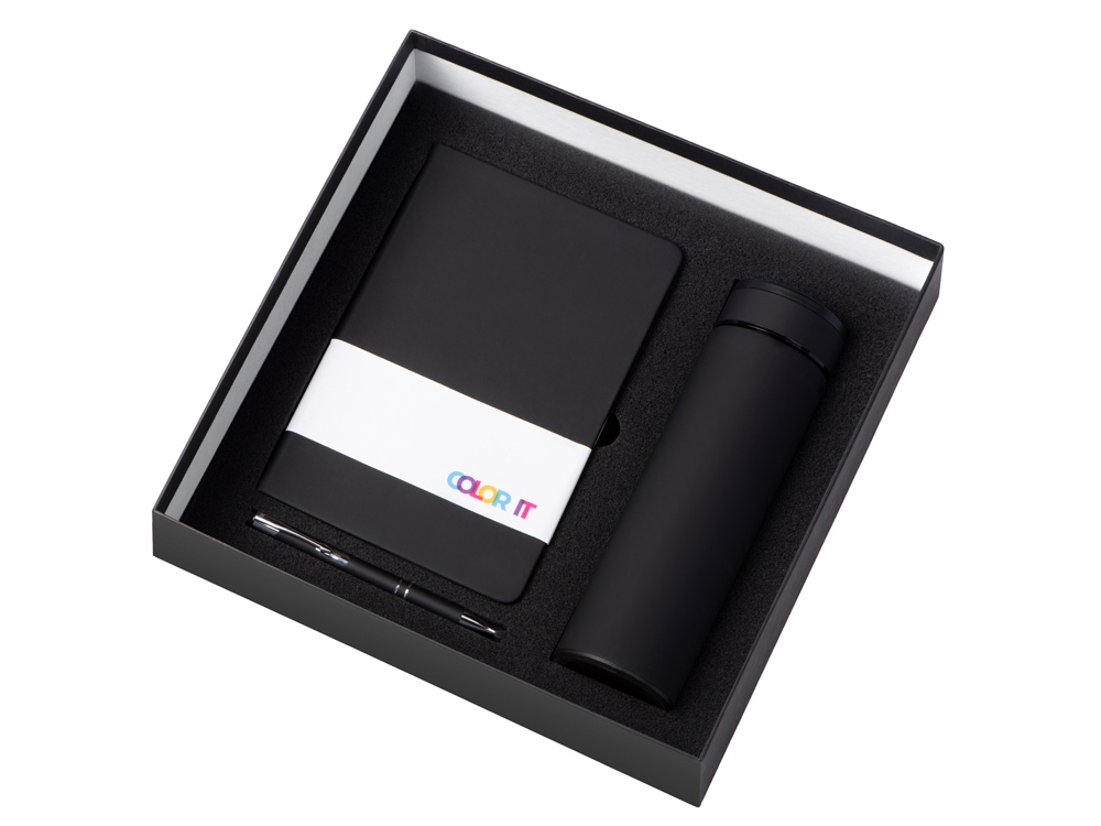 Материал товара: блокнот - искусственная кожа с покрытием soft-touch, ручка - алюминий с покрытием soft-touch, термос - нержавеющая cталь с покрытием soft-touch, коробка - картон