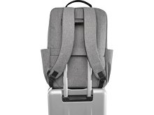 Рюкзак Libra изготовлен из переработанного полиэстера, сертифицированного согласно GRS, и подкладки из RPET. Он оснащен отделением для ноутбука диагональю 15 дюймов с дополнительным мягким карманом для планшета и карманами-органайзерами внутри. Снаружи также имеется несколько карманов, мягкие регулируемые плечевые ремни и ремень для крепления для ручки чемодана сзади. Выдерживает вес до 10 кг. GRS certified recycled polyester.