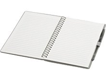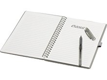 Многоразовый набор из ручки и блокнота в мягкой обложке из каменной бумаги. Блокнот имеет обложку из картона, закругленные углы и 32 листа линованной бумаги плотностью 120 г/м². В производстве каменной бумаги не используется дерево, а на сам процесс изготовления затрачивается гораздо меньше энергии в сравнении с производством переработанной или целлюлозной бумаги. Сзади имеется карман для хранения черной протирочной ткани (входит в комплект). Ручка из переработанного пластика с стираемыми чернилами, прозрачным корпусом, белым ластиком сверху и однотонной цветной рукояткой. Цвет чернил: черный. Длина непрерывной линии: 250 метров. Размер пера: 0,7 мм.