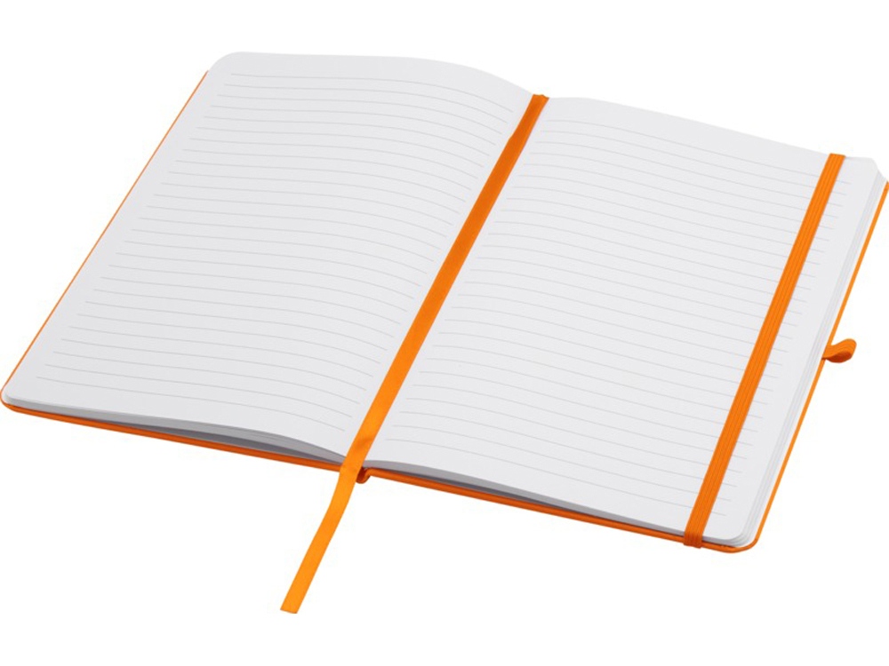 Блокнот Teak формата А5 в твердой обложке из картона с закругленными углами — это не только необходимая вещь в офисе, но и прекрасная возможность для продвижения вашего бренда. В блокноте 96 линованных листов бумаги плотностью 70 г/м2 и мягкая на ощупь обложка. В комплект входит петля для ручки, эластичная застежка и закладка-ленточка. Переработанная бумага.