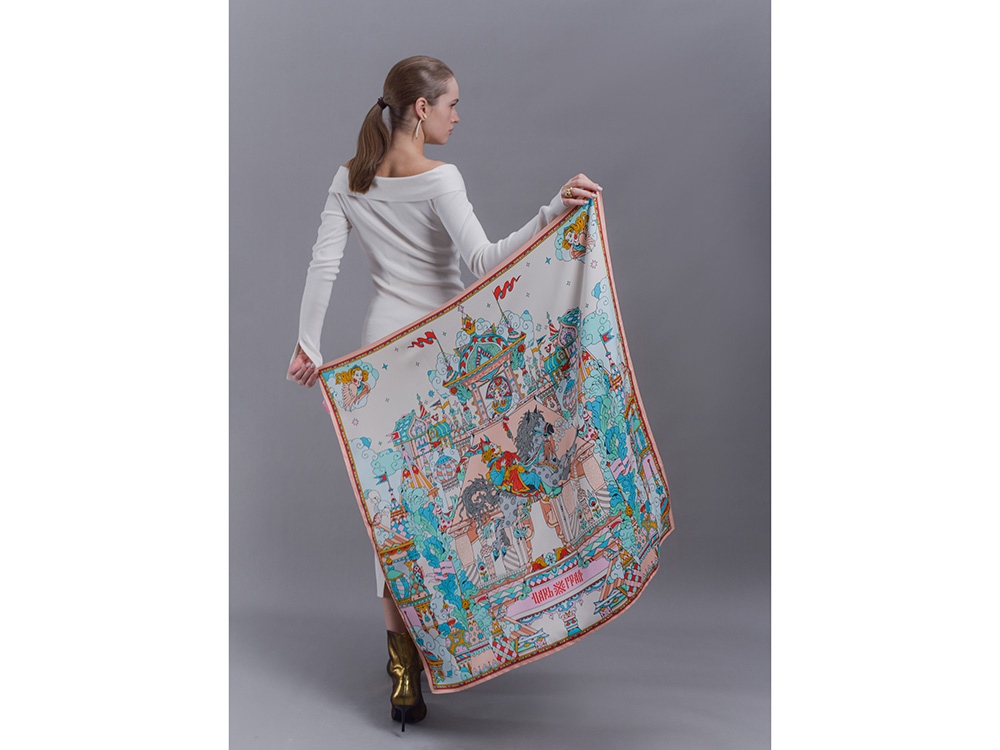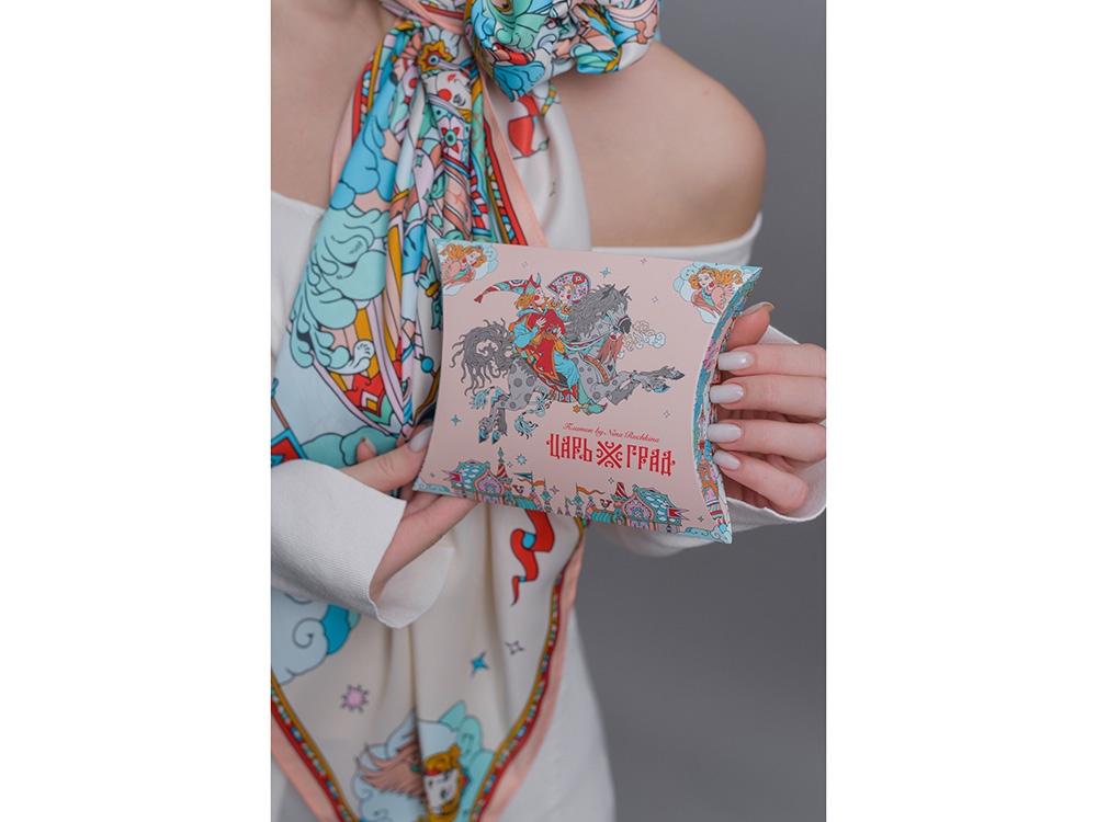 Платок «Царьград» создан в партнерстве с одноименным загородным курортом, где чтут лучшие обычаи русского гостеприимства. Дизайн платка обращен к воплощению народной традиции чародейства и сказки. Сюжет иллюстрирует фольклорную сцену из произведения «Сивка-Бурка» о победе истинного чувства и исполнении желаний.