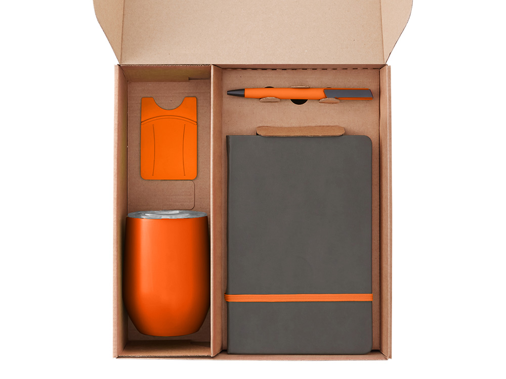 Набор с термокружкой, блокнотом, ручкой и ланчбоксом "Refreshment", оранжевый