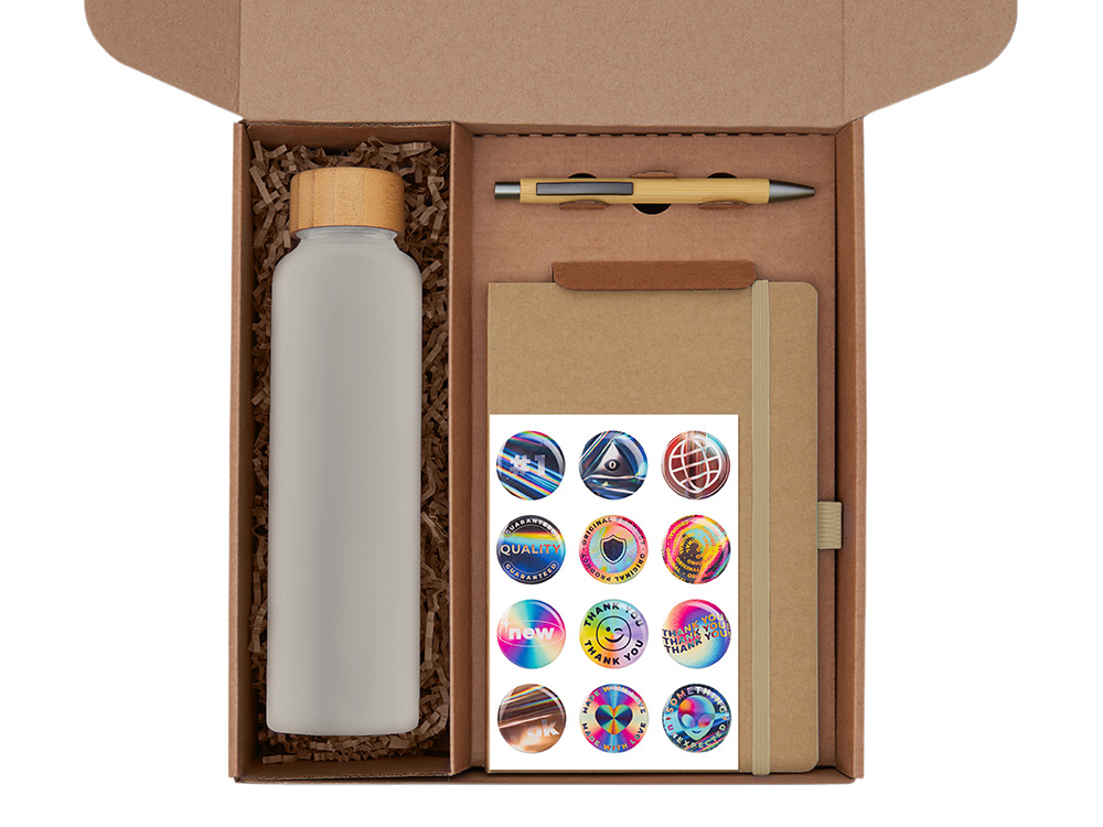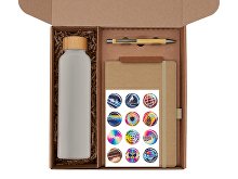 Набор "Wooden" станет отличным подарком для сотрудников, клиентов и партнёров, подчеркнёт внимание к их комфорту и заботу о деталях. Он уместен как корпоративный подарок на праздники, юбилеи и деловые мероприятия, так и в качестве welcome-набора для новых коллег. Набор объединяет всё необходимое для комфортного рабочего дня:  Блокнот для идей, заметок и планов на день; Ручка, которая всегда под рукой; Стеклянная бутылка для воды объемом 600 мл., чтобы поддерживать водный баланс в течение дня; Бамбуковая подставка для телефона, чтобы держать гаджет в поле зрения во время работы или видеозвонков;  Набор стикеров — для ярких акцентов и персонализации вещей Универсальный ложемент обеспечивает аккуратное размещение и надёжную фиксацию элементов, делая набор эффектным и презентабельным при вручении. Дополнительное преимущество — набор доступен в конструкторе наборов: компоненты можно заменить и собрать индивидуальный вариант под стиль компании или вкусы получателя.