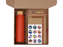Подарочный набор с бутылкой для воды. блокнотом, ручкой и подставкой для телефона, красный