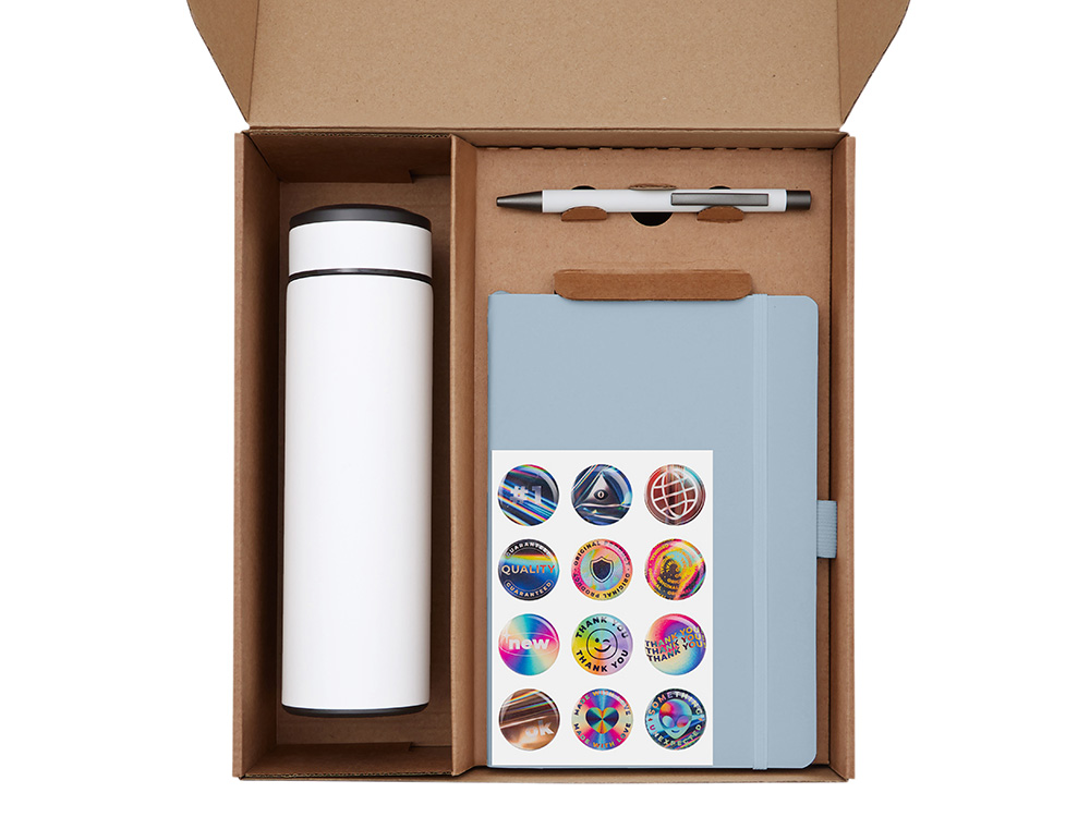 Набор "Warmpage" станет отличным подарком для сотрудников, клиентов и партнёров, подчеркнёт внимание к их комфорту и заботу о деталях. Он уместен как корпоративный подарок на праздники, юбилеи и деловые мероприятия, так и в качестве welcome-набора для новых коллег. Набор объединяет всё необходимое для комфортного и уютного рабочего дня:  Блокнот для идей, заметок и планов на день; Ручка, которая всегда под рукой; Термос, объёмом 420 мл. позволит любимому напитку всегда оставаться горячим;  Чай «Глинтвейн», который подарит энергию и настроение;  Попсокет для удобного удержания смартфона и комфортного использования; Набор стикеров — для ярких акцентов и персонализации вещей. Универсальный ложемент обеспечивает аккуратное размещение и надёжную фиксацию элементов, делая набор эффектным и презентабельным при вручении. Дополнительное преимущество — набор доступен в конструкторе наборов: компоненты можно заменить и собрать индивидуальный вариант под стиль компании или вкусы получателя.