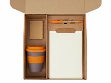 Материал товара: блокнот- бумага из переработанных тетра-паков, ручка- картон,пластик, стакан- 50% бамбуковое волокно, 50% полипропилен, коробка- картон
