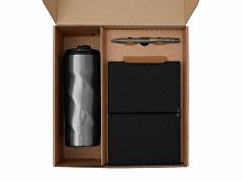 Материал товара: блокнот- искусственная кожа, бумага, ручка - металл с поверхностью soft-touch, термокружка - кружка- нержавеющая сталь, крышка- пластик, картхолдер - переработанный полиуретан, открытка - бумага, коробка- картон
