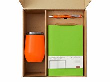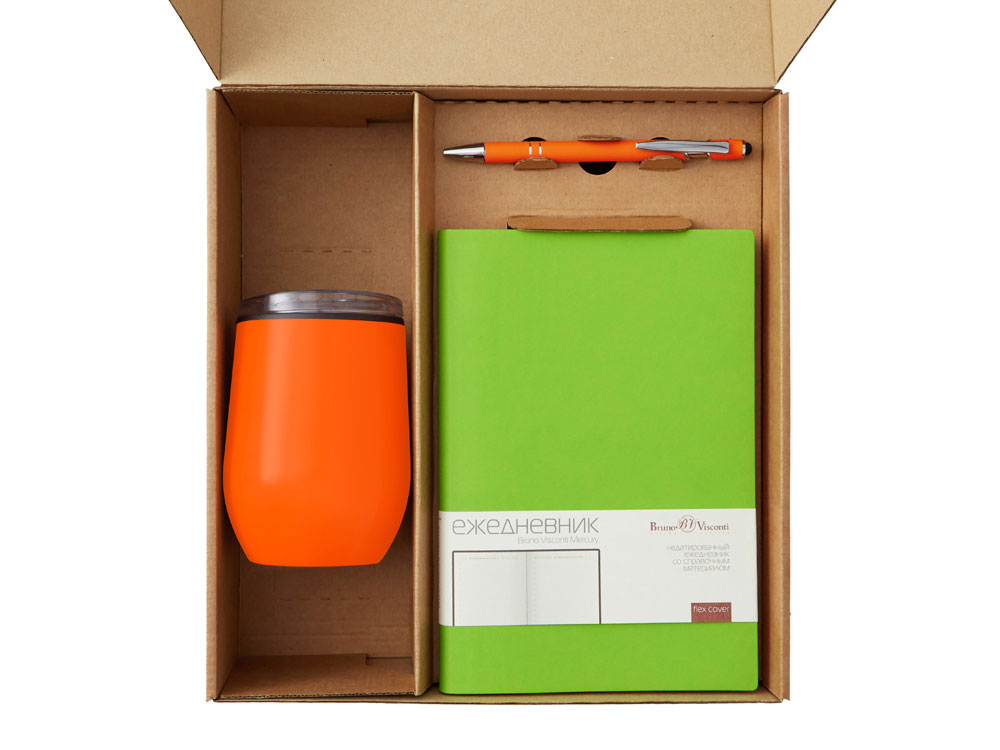 Материал товара: ежедневник - искусственная кожа, термокружка - нержавеющая сталь снаружи, полипропилен внутри, ручка - металл c покрытием soft-touch, ситечко - нержавеющая cталь