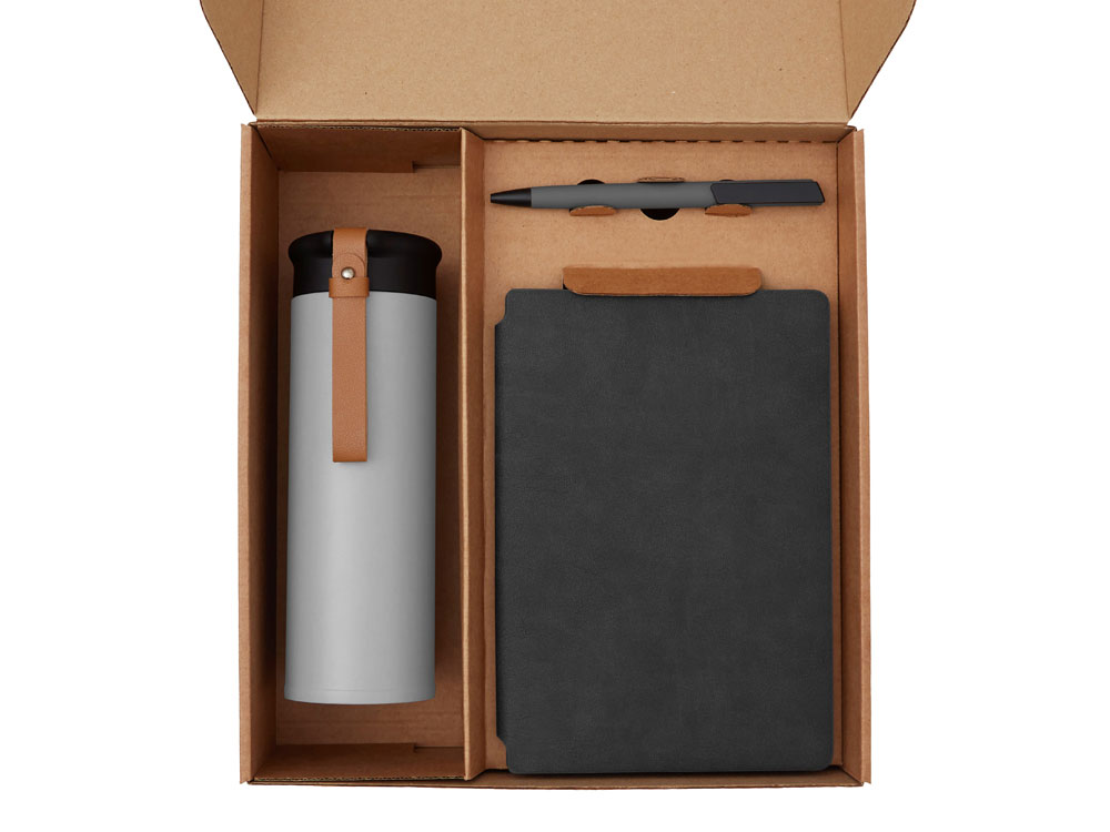 Материал товара: термос - нержавеющая сталь, soft-touch, блокнот - термо PU с зернистой структурой, ручка - пластик с покрытием soft-touch, стикеры - смола