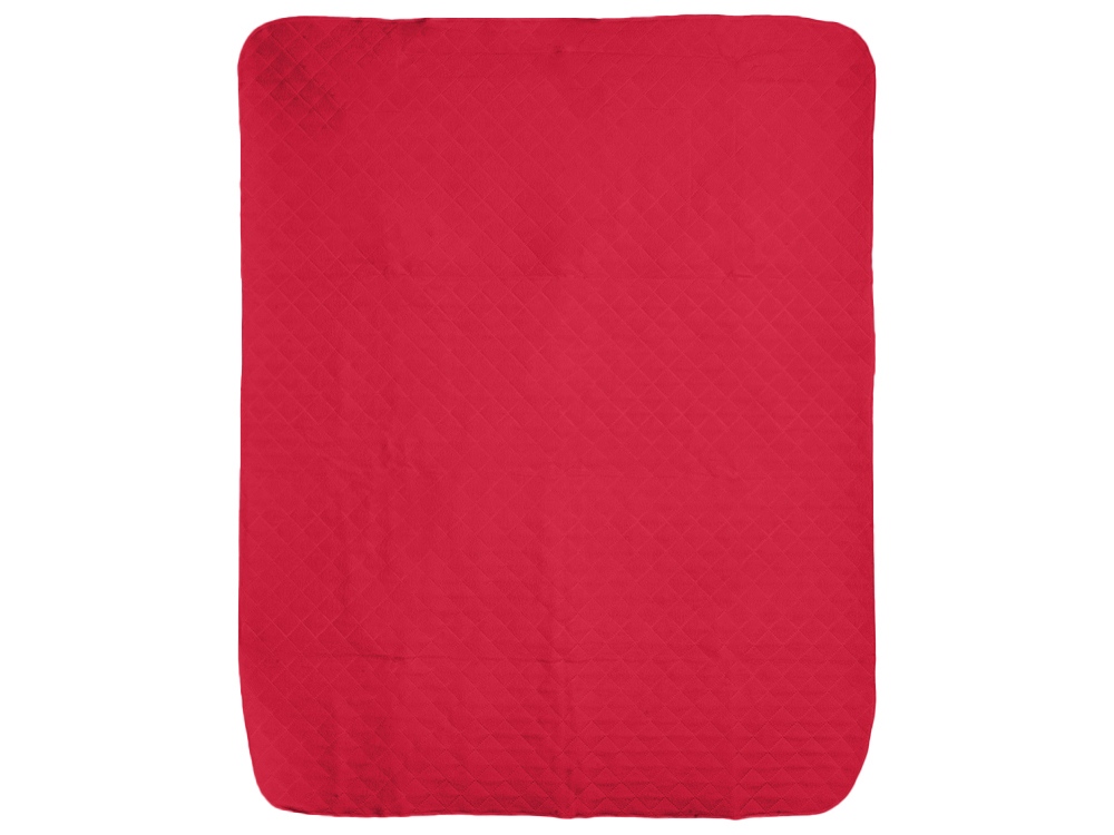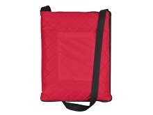 Двухсторонний плед с водоотталкивающим покрытием с одной стороны и мягким флисом с другой. Складывается в сумку на плечо и фиксируется с помощью молнии. В собранном виде имеет регулируемый по длине ремень для переноски и наружный карман для мелочей.