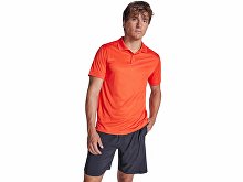 Мужское поло с коротким рукавом из технологичного полотна. Рибовый воротник 1х1, застежка на кнопки. Отстрочка в тон. Рибовые манжеты.