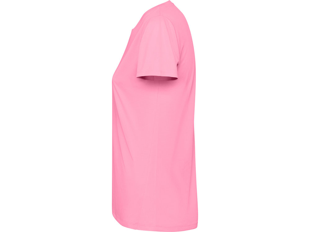 Женская футболка с коротким рукавом из технологичного полотна. Отстрочки в тон. Спинка с удлинением. Боковые швы со смещением вперед.
