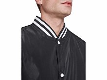 Утепленный бомбер колорблок из двух цветов. Воротник, манжеты и низ из риба 1х1 с двумя контрастными полосами. Боковые карманы закрываются на молнию. Контрастный кнопки.