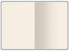 Бумажный блок, закрепленный книжным переплетом, выполнен из бежевой офсетной бумаги плотностью 70 г/ кв м. Внутри блока есть страница для персональных данных, справочная информация на 13 страницах. Блок для записей имеет линовку с указанием временных интервалов в один час.