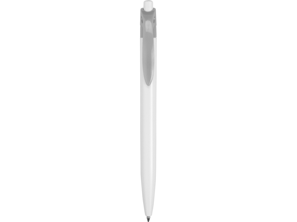 Стильная пластиковая ручка с ярким цветным клипом и белым корпусом отлично подойдет для нанесения логотипов и рекламной информации. Нажимной механизм.