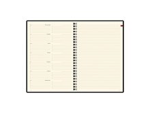 Блок является сменным и вставляется внутрь обложки. С внутренней стороны обложка имеет вырубные отделения для визиток и кредитных карт, а также петлю для ручки на резинке. Для хранения чеков, записок и бумаг внутри расположен прозрачный пластиковый конверт.