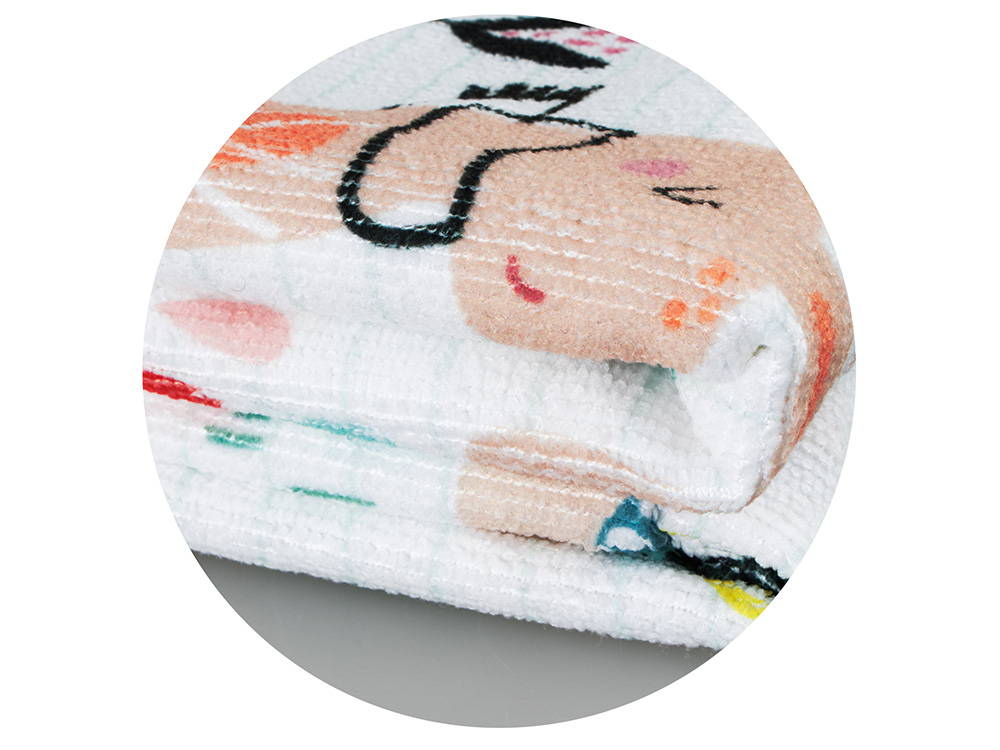 Полотенце подходит для полноцветной печати методом сублимации, которая передаёт все оттенки и детали изображения. Отделка по краю цветной оверлочной нитью добавляет яркую запоминающуюуся деталь.