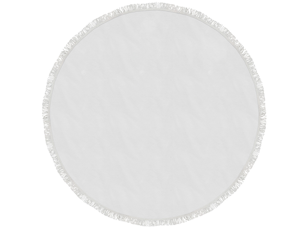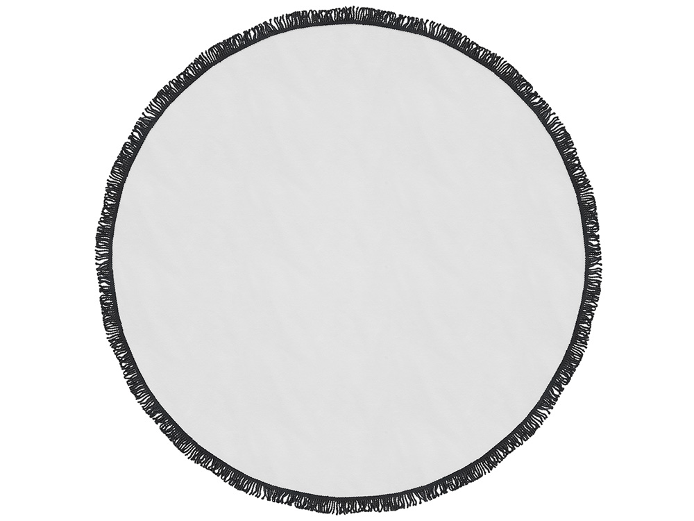 Необычный и трендовый вариант классического пляжного аксессуара. Круглая форма полотенца помогает быстро и удобно расстилать его на земле или шезлонге. Плотный полиэстер сохнет быстрее обычных тканей, поэтому полотенцу не требуется дополнительная упаковка после использования - достаточно ненадолго развесить его для просушки. Полноцветная печать на полотенце производится с помощью сублимации. Бахрома по краю может быть изготовлена в двух цветах (белый и чёрный) на выбор клиента.