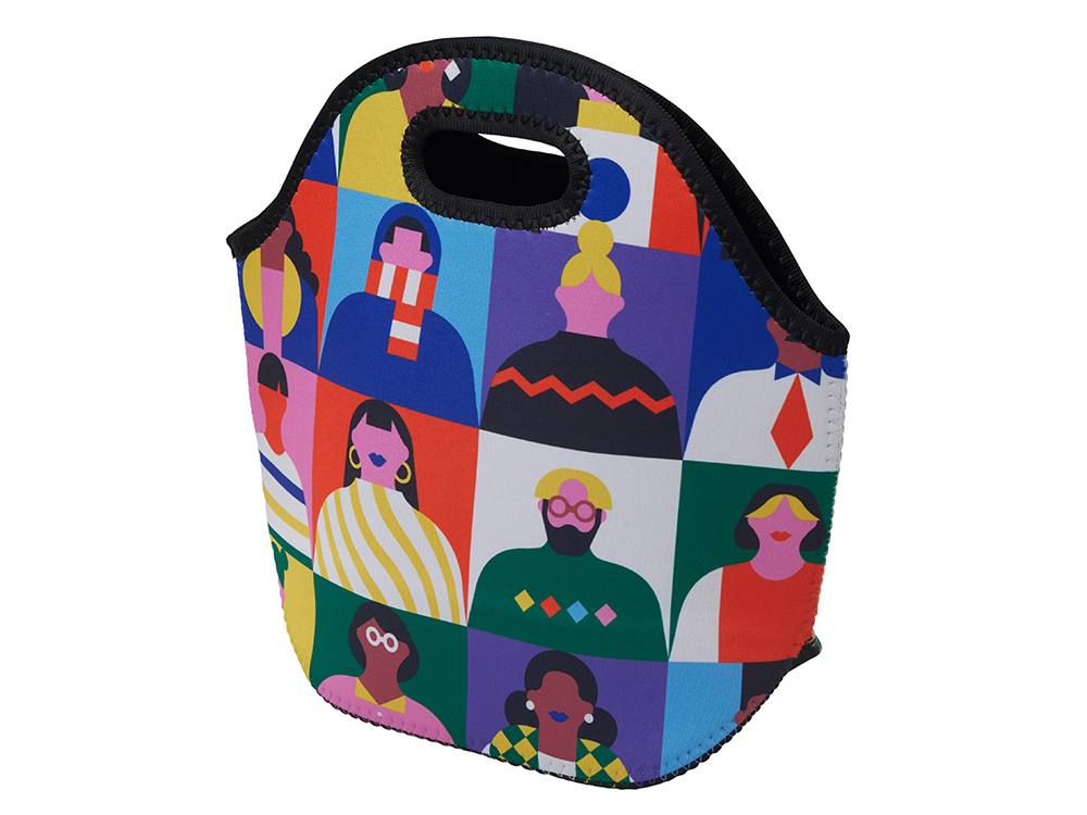 Модная сумка для ланча - обязательный спутник на пикнике и отдыхе за городом. Объём в 5 л достигается благодаря донной складке, такой вместительности хватит для еды на несколько человек. Широкие ручки встроены в конструкцию, благодаря чему сумка может выдержать большой вес, например объёмного термоса и нескольких ланчбоксов. Неопрен, из которого изготовлена сумка, дополнительно помогает сохранить продукты от перегрева в жару и не промокает. Полноцветная печать доступна на лицевой стороне.