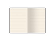 Твердая обложка с приятной фактурой, углами закругленной формы, книжный переплет и ляссе в цвет обложки наделяют блокнот практичностью.