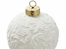 Фарфоровый шар с росписью в технике бисквит. Игрушка ручной работы. Матовая, бархатистая поверхность и пастельные тона создают утонченный образ старинного зимнего праздника. Это воплощение изящества и ностальгии.