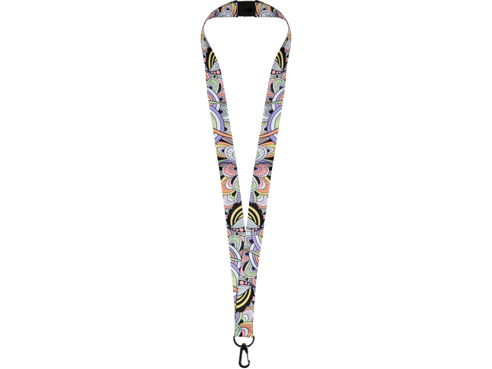 Ланъярд 2 см под сублимацию с карабином и замком обрыва, черный