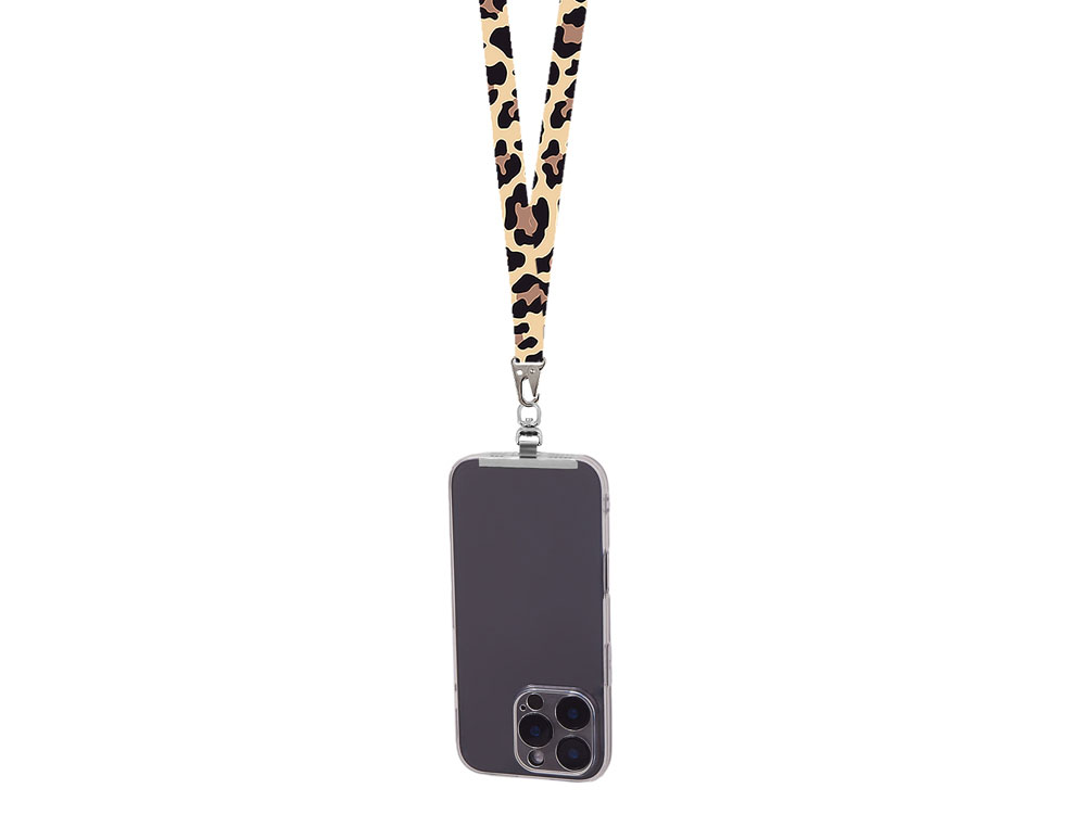 Ланъярд 2,5 см под сублимацию с большим карабином, замком обрыва и металлическим держателем для телефона
