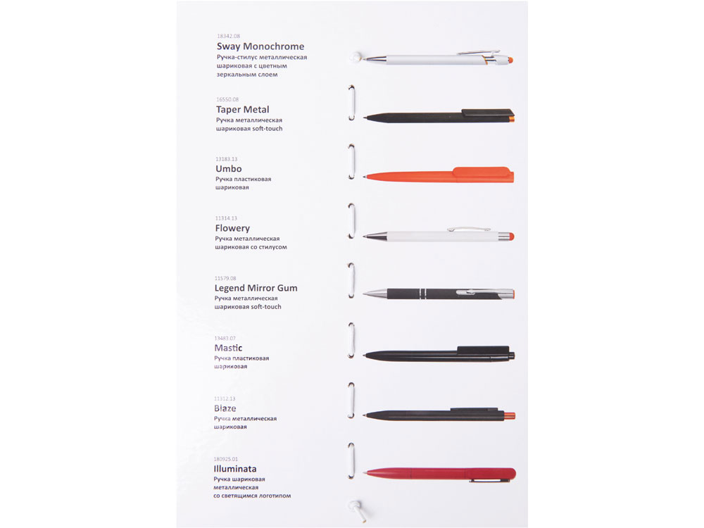 Промо-набор — идеальный инструмент для презентаций: клиенты могут подержать ручки в руках, опробовать их на письме и наглядно увидеть различия между видами нанесения. При этом все самые важные модели собраны в одном легком и компактном наборе.