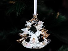 Игрушка бережно упакована в картонную коробку с внутренним вкладышем, который надежно фиксирует её внутри. Для вашего удобства в комплекте есть ленточка, чтобы игрушку можно было сразу повесить на ёлку.