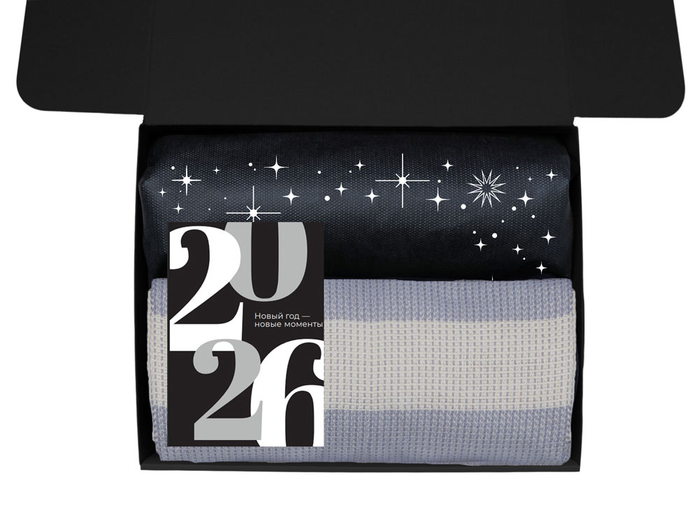 Материал товара: плед - 100% хлопок, мешок - нетканый материал (спанбонд), термос - нержавеющая cталь с покрытием soft-touch, открытка - бумага