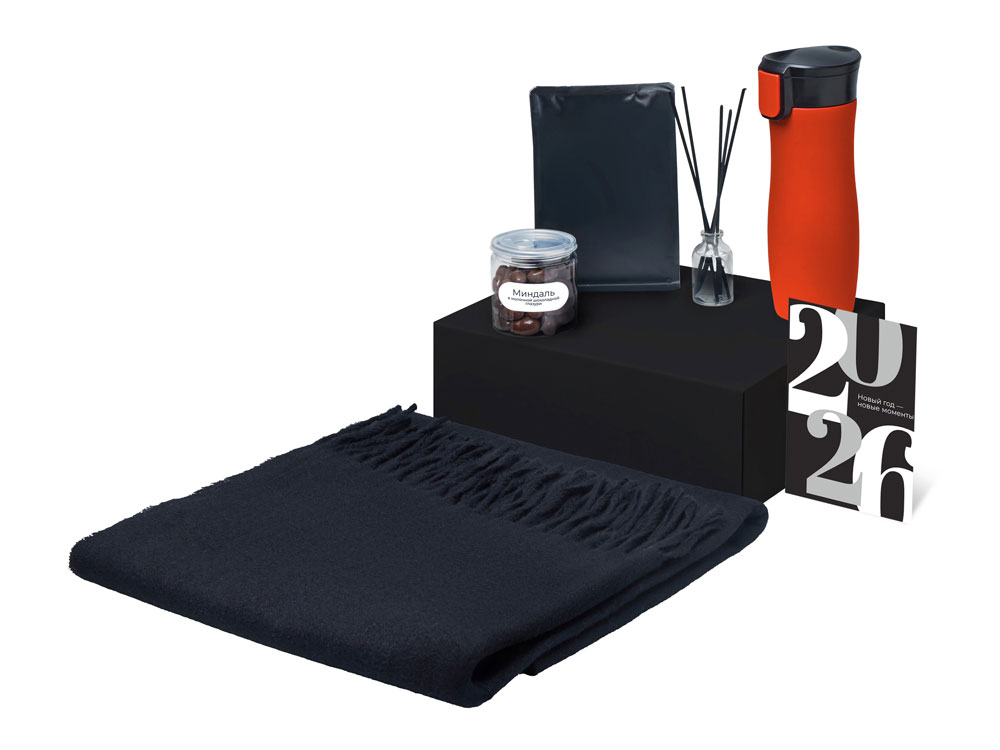 Материал товара: палантин - 100% полиэстер, термокружка - нержавеющая сталь, открытка - бумага, мешок - нетканый материал (спанбонд)