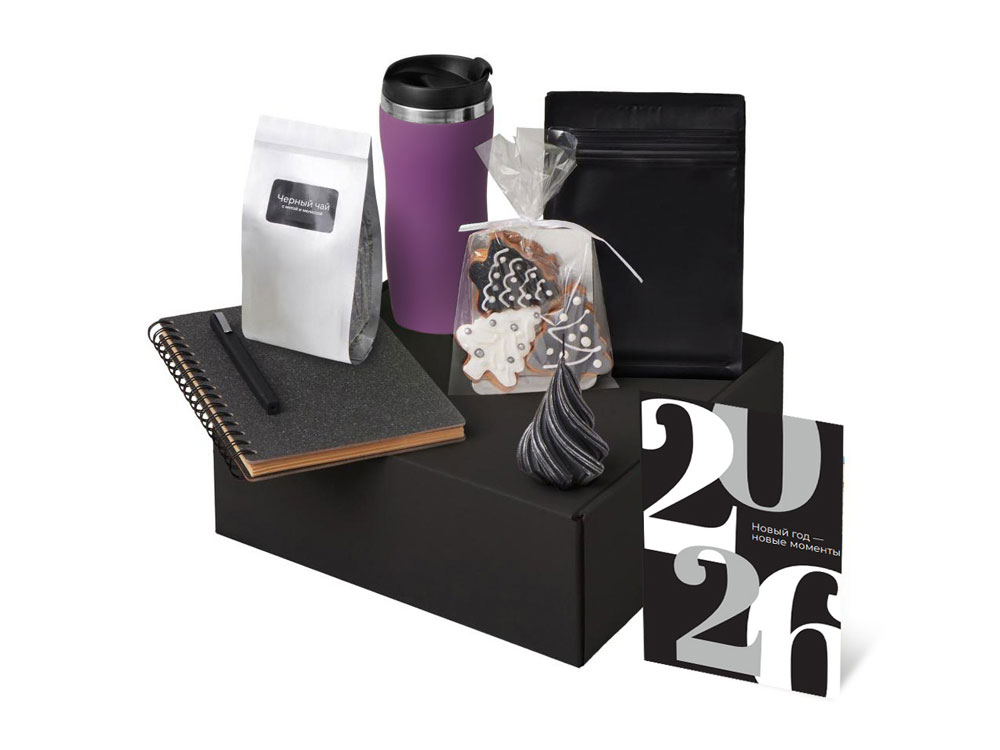 Материал товара: термокружка - нержавеющая cталь с покрытием soft-touch; ручка - пластик с покрытием soft-touch; блокнот - картон, переработанная бумага; открытка - бумага; мешок - нетканый материал (спанбонд)