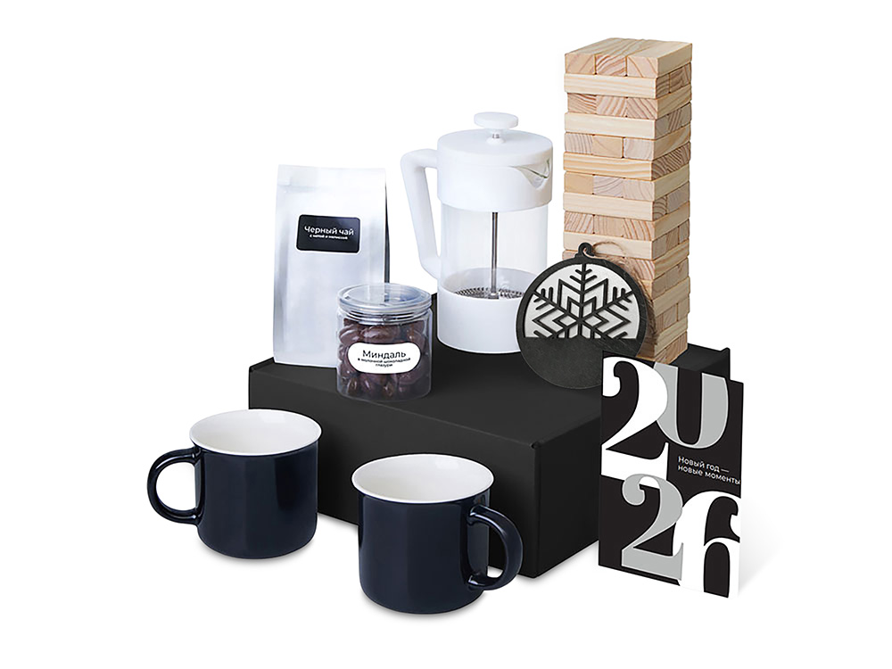 Материал товара: кружка - костяной фарфор; френч-пресс - боросиликатное стекло, нержавеющая сталь, пластик; игра - дерево сосны, хлопок; подвеска - дерево; открытка - бумага; мешок - нетканый материал (спанбонд)