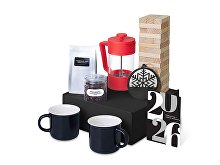 Материал товара: кружка - костяной фарфор; френч-пресс - боросиликатное стекло, нержавеющая сталь, пластик; игра - дерево сосны, хлопок; подвеска - дерево; открытка - бумага; мешок - нетканый материал (спанбонд)
