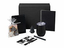 Подарочный набор c термокружкой, блокнотом, ручкой и свечкой, черный