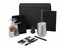 Подарочный набор c термокружкой, блокнотом, ручкой и свечкой, серебристый