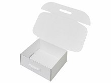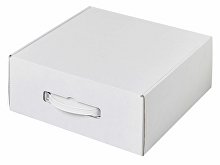 Коробка с пластиковой ручкой обеспечивает удобную функцию переноски и делает упаковку ещё более функциональной. Внутрь коробки можно поместить различные сувениры: кружку, заварочный чайник, баночку мёда или варенья. При желании можно добавить декоративный бумажный наполнитель, который подчеркнёт ваш тонкий вкус и придаст подарку завершённый вид. Съедобные товары для наполнения вы также можете заказать у нас.