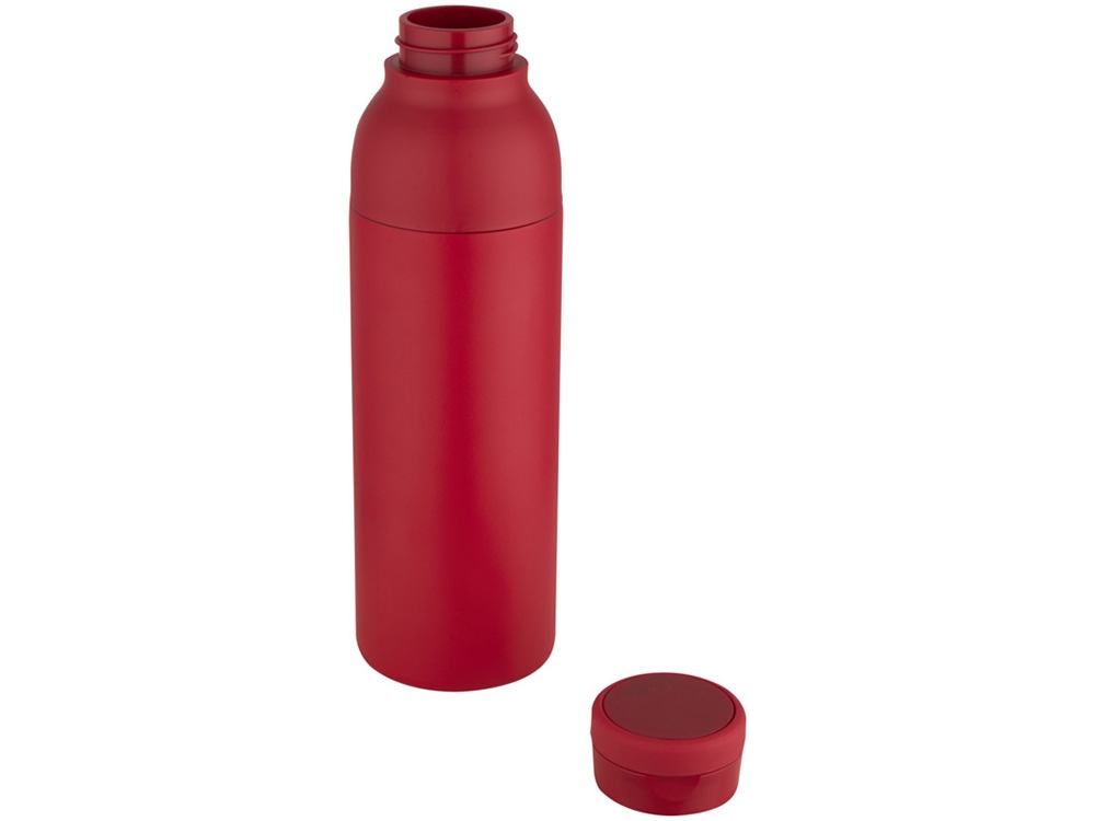 Бутылка для воды с двойными стенками, вакуумной изоляцией, из нержавеющей стали сертифицированной согласно RCS, с незаметной встроенной в крышку силиконовой ручкой. Двухкомпонентная конструкция облегчает простую очистку, а прочное порошковое покрытие и медное покрытие гарантируют долговечность. Поставляется в подарочной коробке из переработанного картона. Объем: 650 мл. 80% Нержавеющая сталь из переработки, сертифицированная RCS, 10% Пластик PP, 10% Силиконовый Пластик. упаковка FSC Mix Credit P5.1 CU-COC-877277.