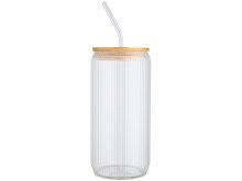 Банка из боросиликатного стекла со стеклянной трубочкой и бамбуковой крышкой. Банка имеет уникальный ребристый дизайн внутри и гладкую внешнюю поверхность, идеально подходящую для печати логотипа. Используемый бамбук выращивается в экологически чистых условиях с соблюдением принципов экологической и социальной ответственности. Поставляется в подарочной коробке из переработанного картона. Объем: 650 мл. 90% Боросиликатное стекло, 10% Бамбук с сертификатом FSC. упаковка FSC Mix 100% P5 CU-COC-877277. FSC Mix Credit N5 CU-COC-877277.