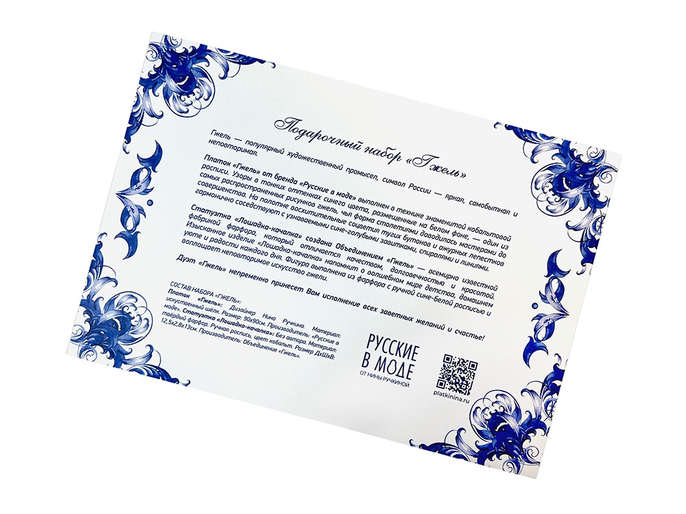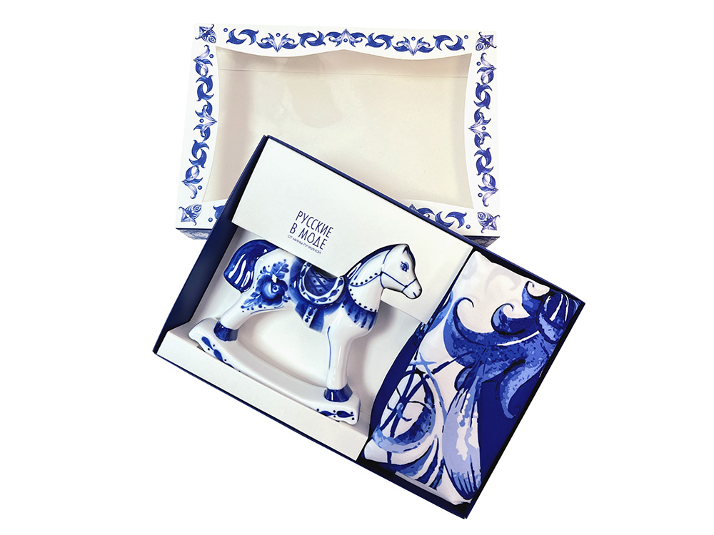 Комплектность: платок 90 х 90 см, статуэтка лошадка-качалка 12 х 13 х 3 см